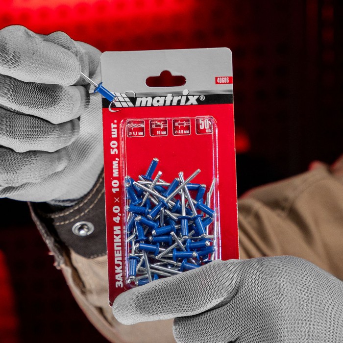Заклепки 4.0 х 10 мм RAL 5005, синие, 50 шт Matrix (40686)