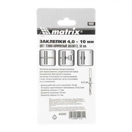 Заклепки 4.0 х 10 мм RAL 8017, темно-коричневый, 50 шт Matrix (40680)