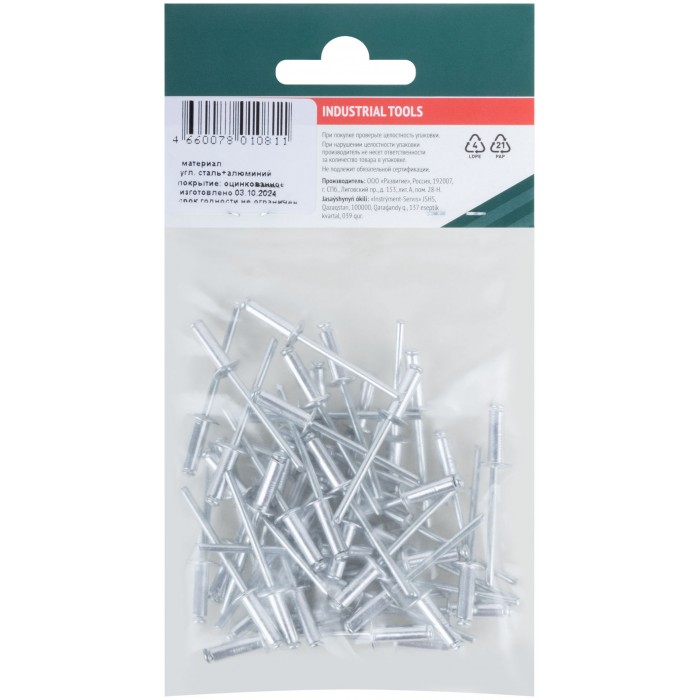 Заклепки мелкая фасовка, 50 шт., 4.0 х 12 мм (23742)