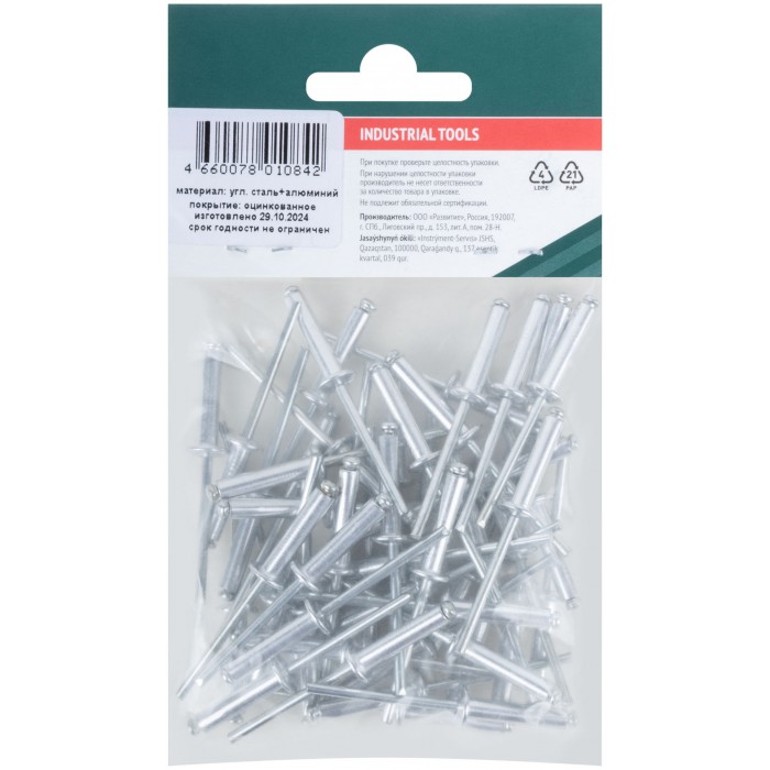 Заклепки мелкая фасовка, 50 шт., 4.0 х 18 мм (23748)