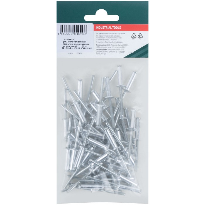 Заклепки мелкая фасовка, 50 шт., 4.8 х 18 мм (23768)