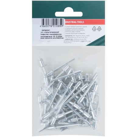 Заклепки мелкая фасовка, 50 шт., 4.8 х 8 мм (23758)
