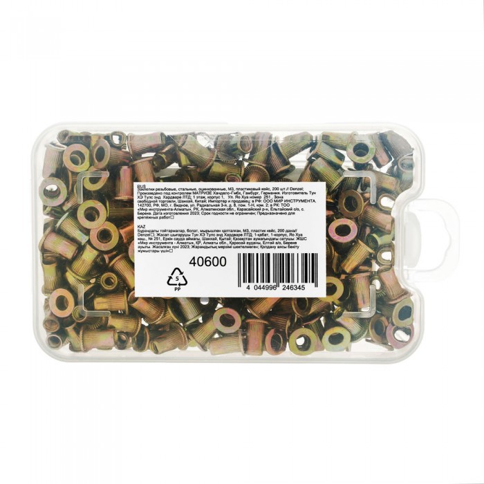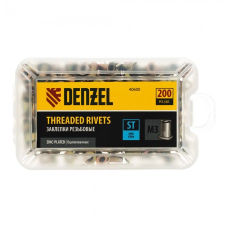 Заклепки резьбовые, стальные, оцинкованные, М3, пластиковый кейс, 200 шт. Denzel (40600)
