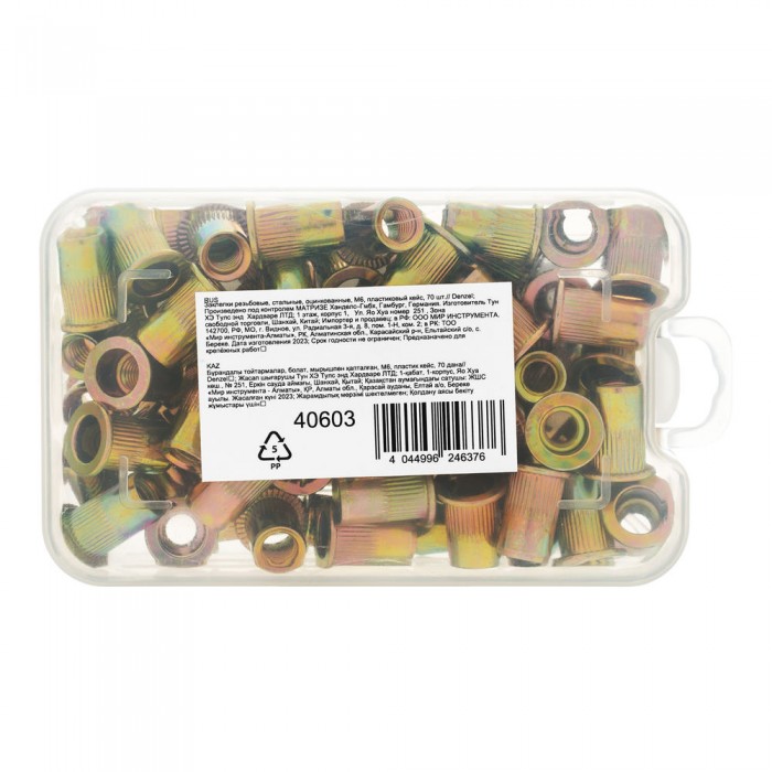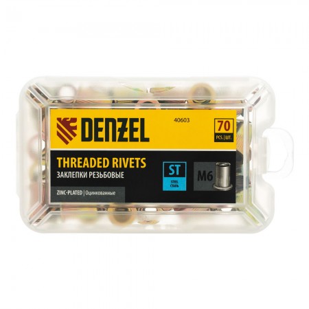 Заклепки резьбовые, стальные, оцинкованные, М6, пластиковый кейс, 70 шт. Denzel (40603)