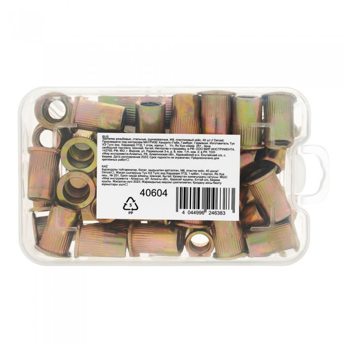 Заклепки резьбовые, стальные, оцинкованные, М8, пластиковый кейс, 40 шт. Denzel (40604)