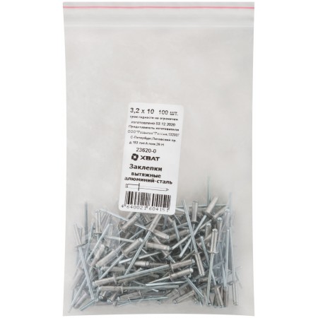 Заклепки вытяжные комбинированные, алюминий-сталь 3,2 х 10 100шт Фасовка (23620-0)