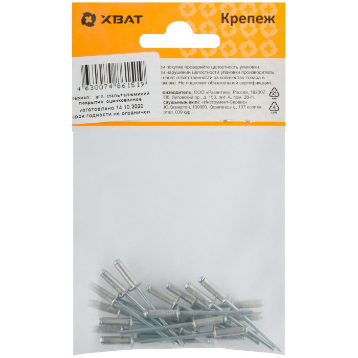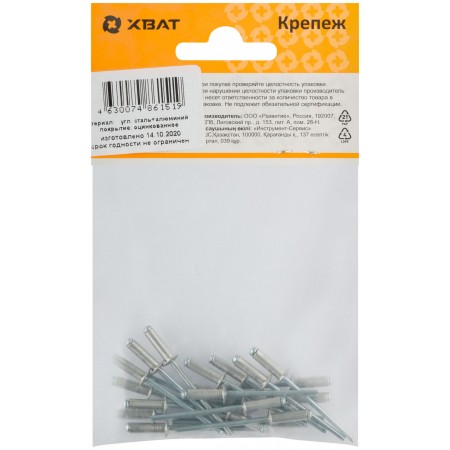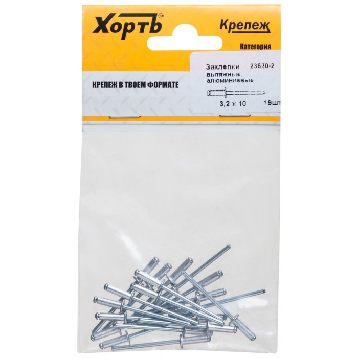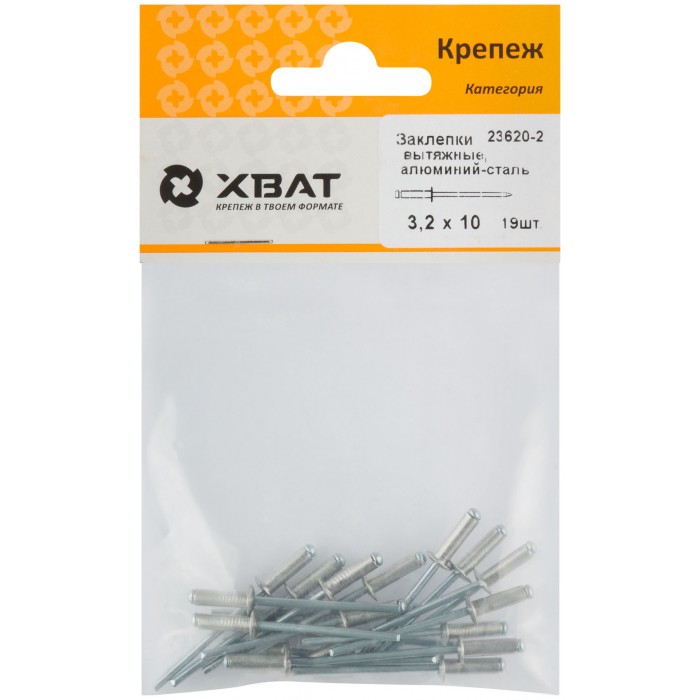 Заклепки вытяжные комбинированные, алюминий-сталь 3,2 х 10 (фасовка 19 шт.) (23620-2)