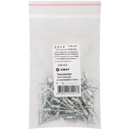Заклепки вытяжные комбинированные, алюминий-сталь 3,2 х 6 100шт Фасовка (23616-0)