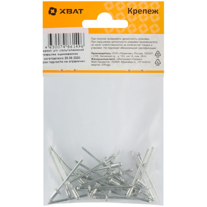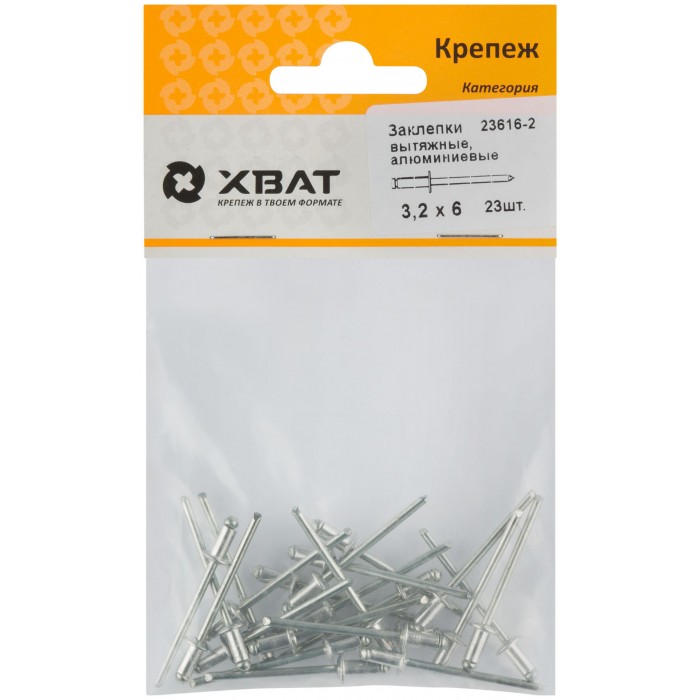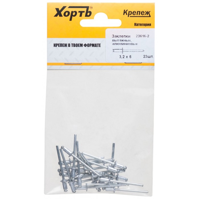 Заклепки вытяжные комбинированные, алюминий-сталь 3,2 х 6 (фасовка 23 шт.) (23616-2)