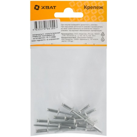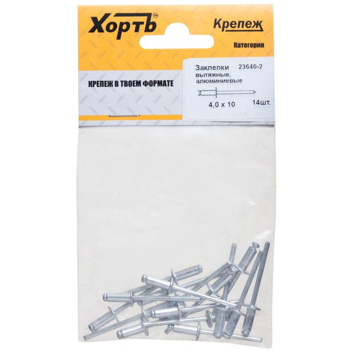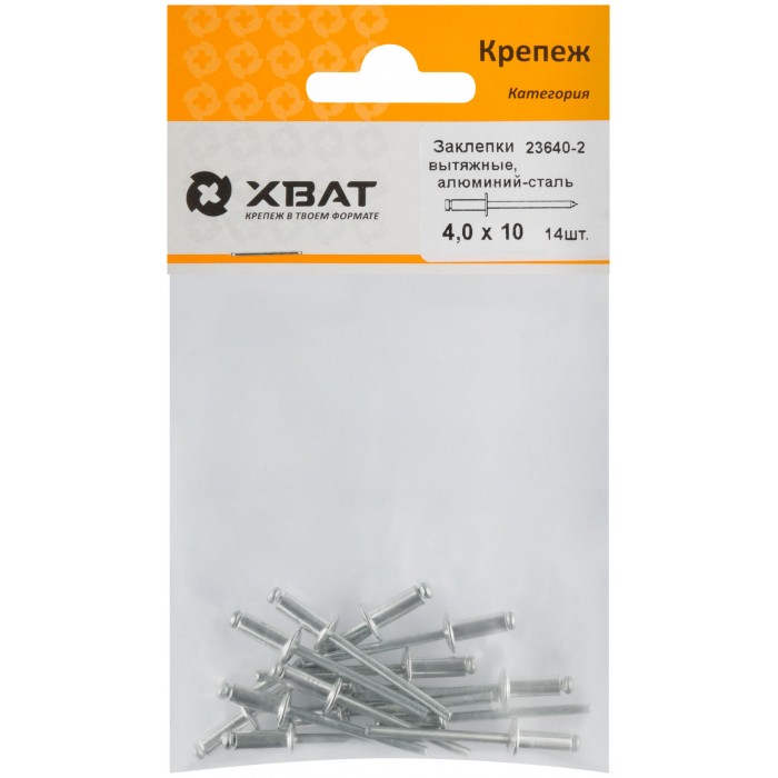 Заклепки вытяжные комбинированные, алюминий-сталь 4,0 х 10 (фасовка 14 шт.) (23640-2)