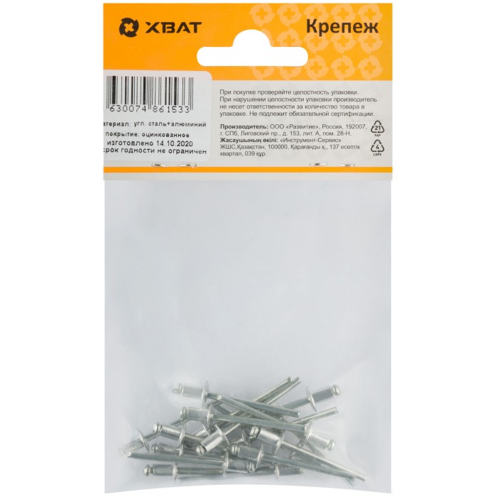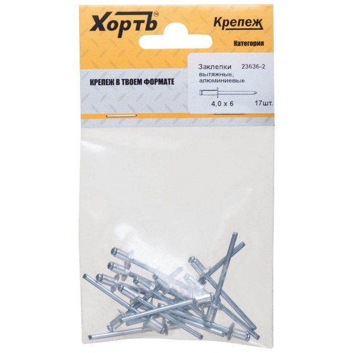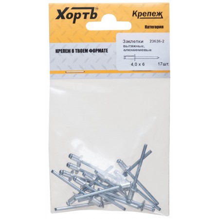 Заклепки вытяжные комбинированные, алюминий-сталь 4,0 х 6 (фасовка 17 шт.) (23636-2)