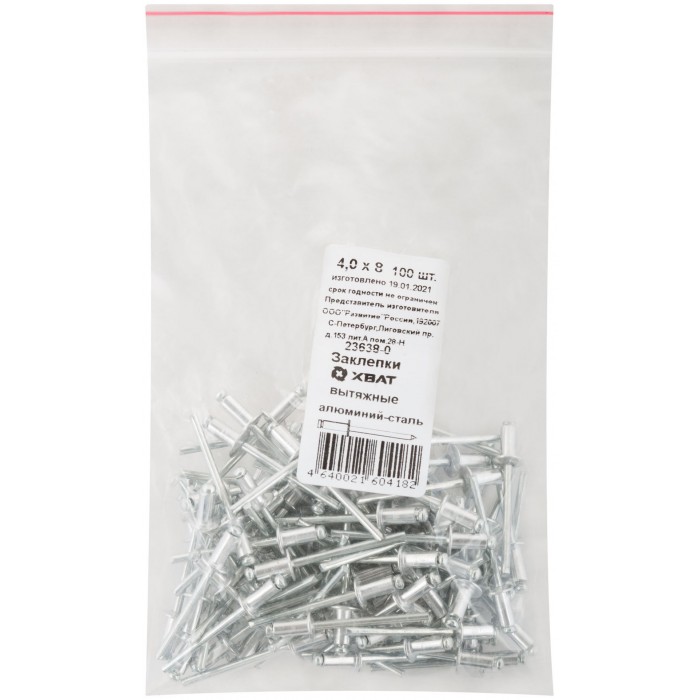 Заклепки вытяжные комбинированные, алюминий-сталь 4,0 х 8 100шт Фасовка (23638-0)