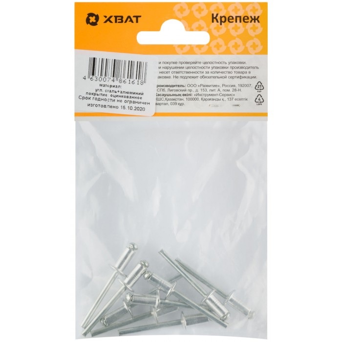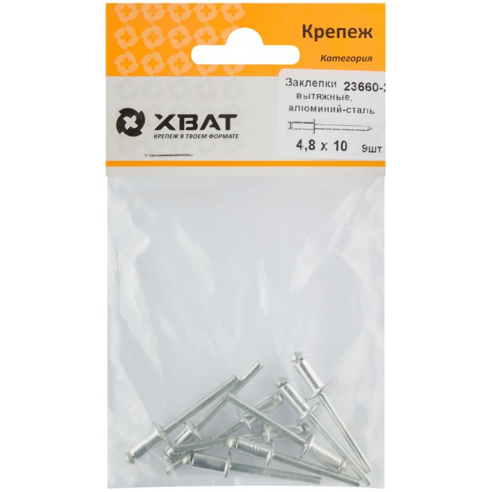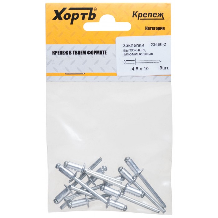 Заклепки вытяжные комбинированные, алюминий-сталь 4,8 х 10 (фасовка 9 шт.) (23660-2)