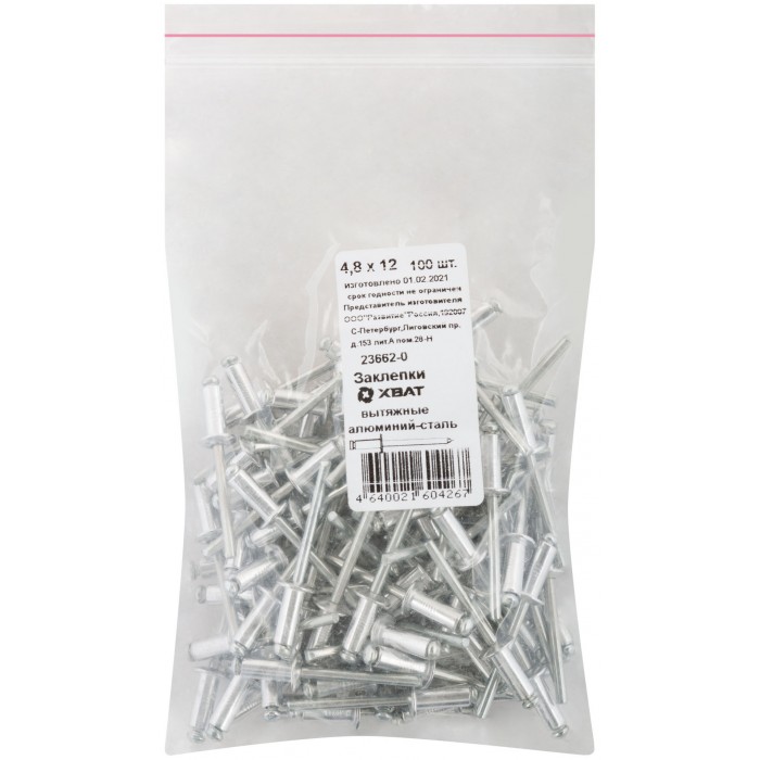 Заклепки вытяжные комбинированные, алюминий-сталь 4,8 х 12 100шт Фасовка (23662-0)
