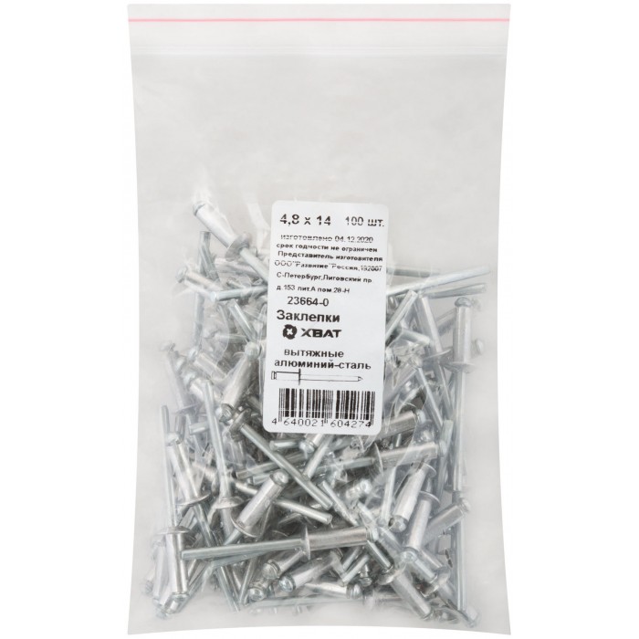Заклепки вытяжные комбинированные, алюминий-сталь 4,8 х 14 100шт Фасовка (23664-0)