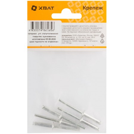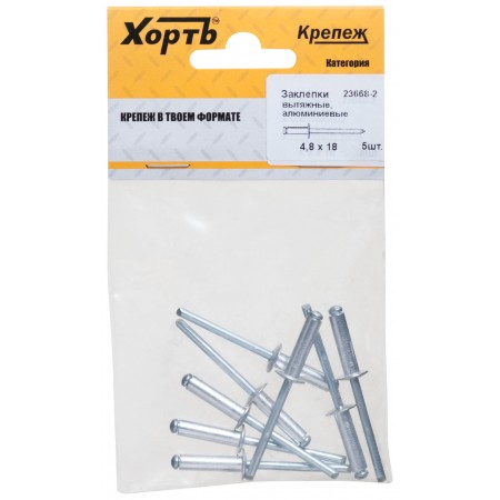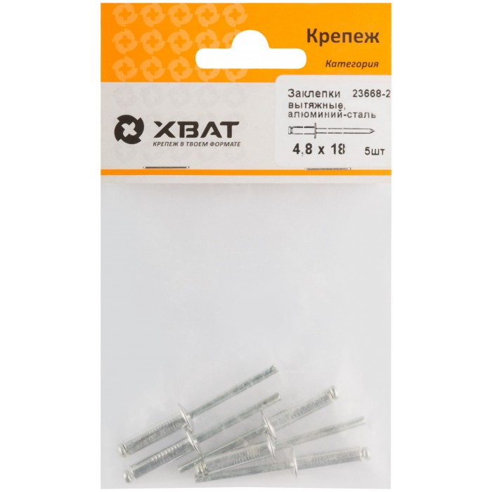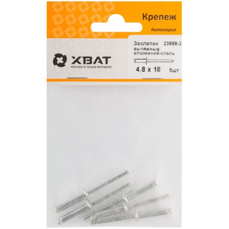 Заклепки вытяжные комбинированные, алюминий-сталь 4,8 х 18 (фасовка 5 шт.) (23668-2)