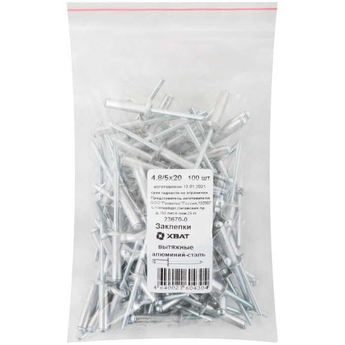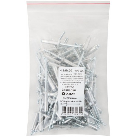 Заклепки вытяжные комбинированные, алюминий-сталь 4.8 х 20 100 шт. Фасовка (23670-0)