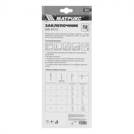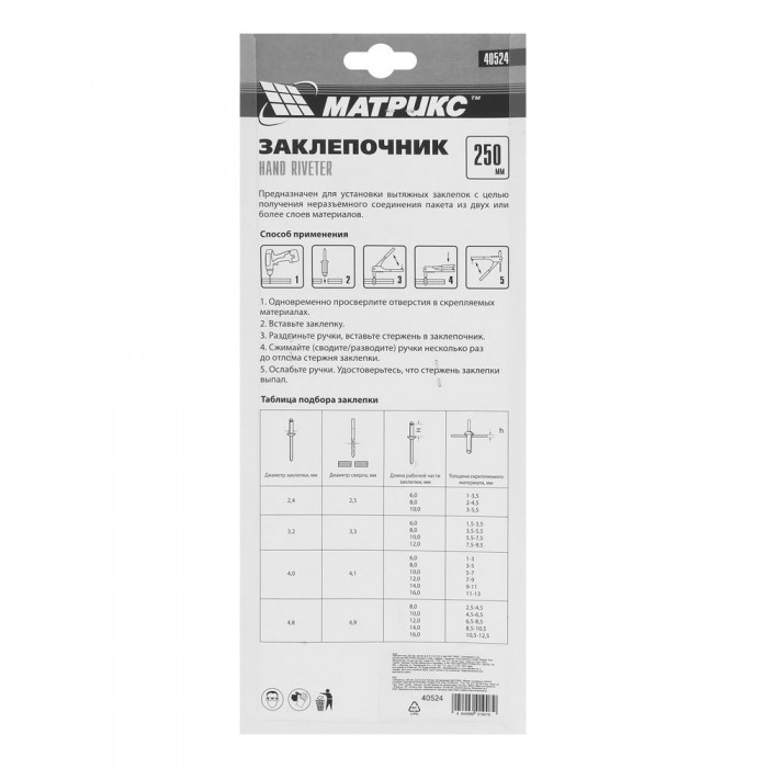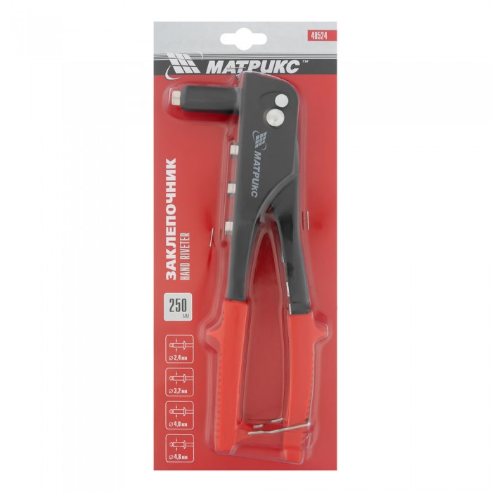 Заклепочник, 250 мм, заклепки 2.4-3.2-4.0-4.8 мм Матрикс (40524)