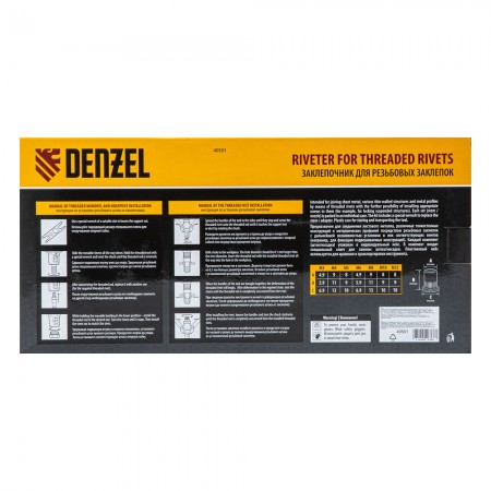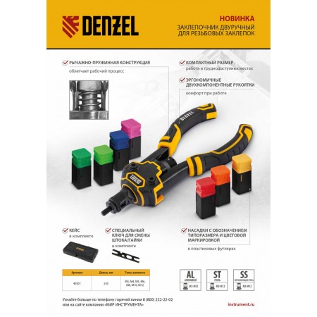 Заклепочник для резьбовых заклепок, двуручный, заклепки М3, М4, М5, М6, М8, М10, M12 Denzel (40501)
