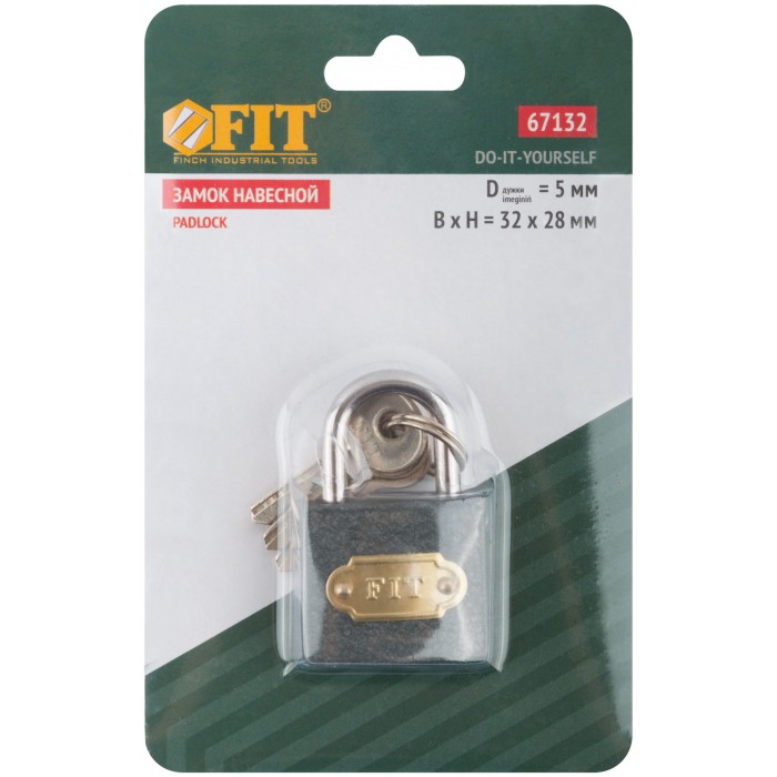 Замок навесной железный 32х28 мм, стальная дужка 5 мм (67132)