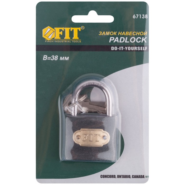 Замок навесной железный 38х32 мм, стальная дужка 5,2 мм (67138)