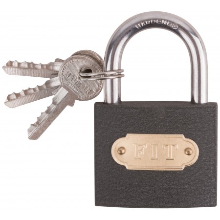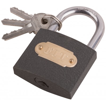 3 ключа. Автоматическое запирание. Материал: корпус из инструментальной стали, дужка из закаленной инструментальной стали. Упаковка: блистер.