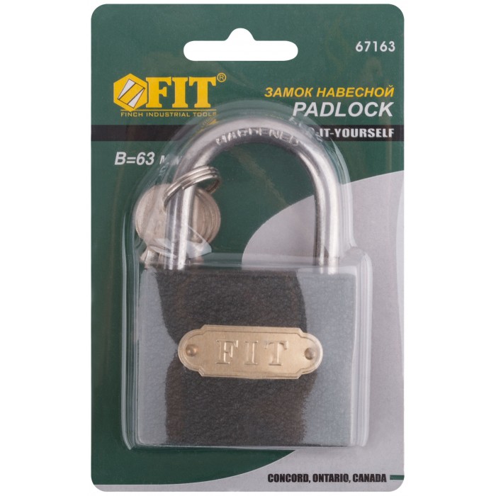 Замок навесной железный 60х48 мм, стальная дужка 7,5 мм (67163)