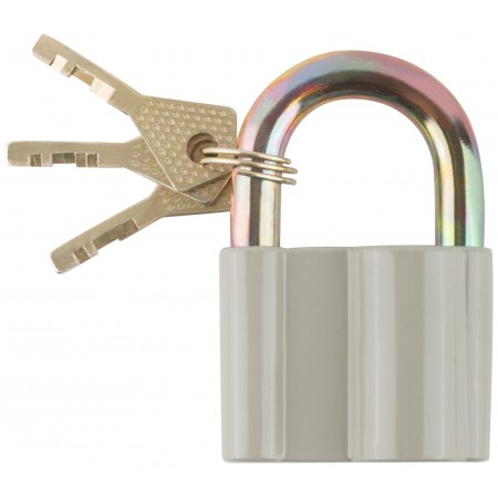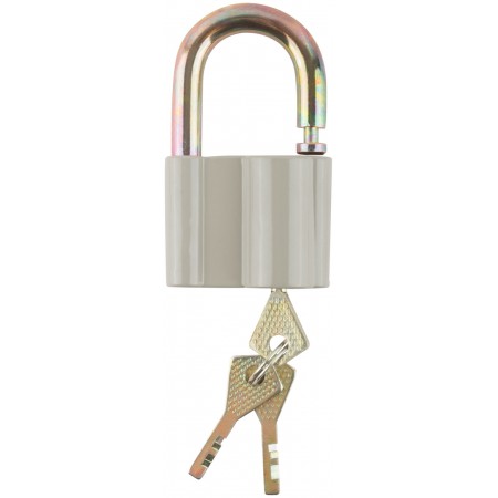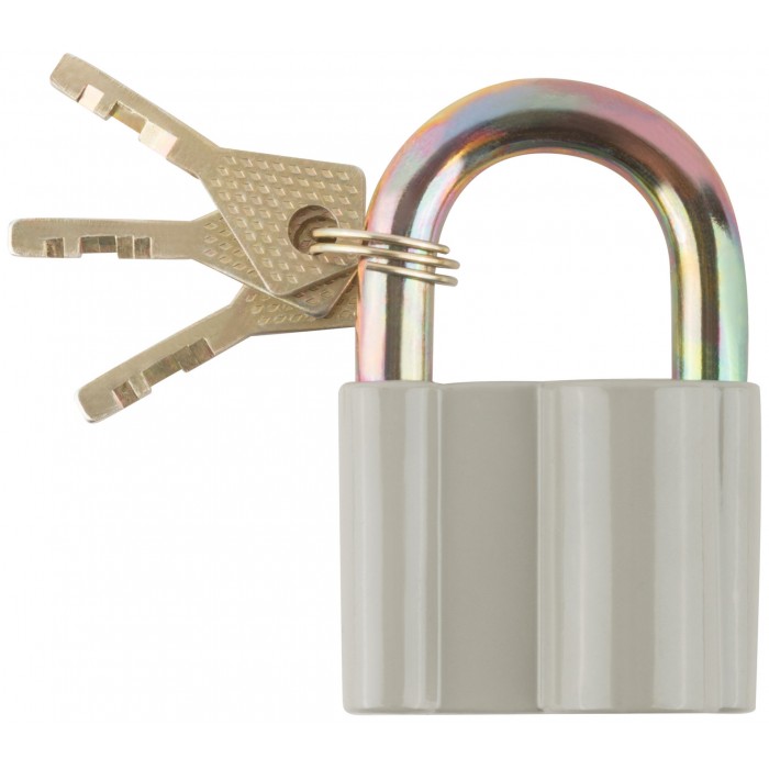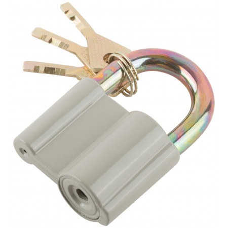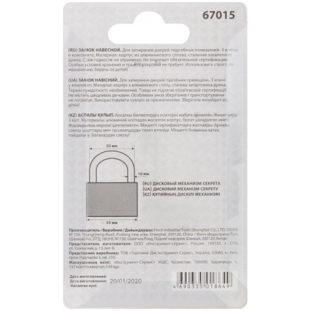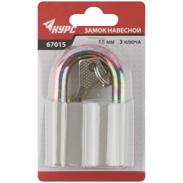 Дисковый механизм секрета. Корпус из алюминиевого сплава, стальная закаленная дужка. Три ключа в комп. Упаковка : блистер.
