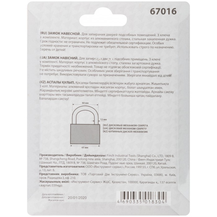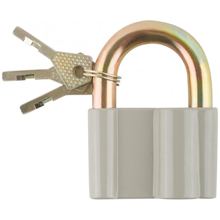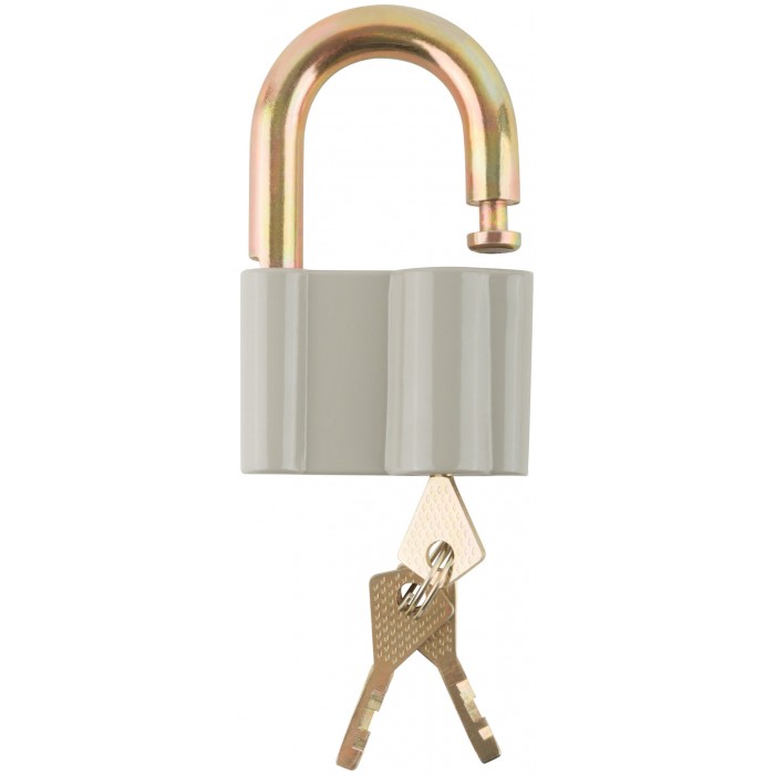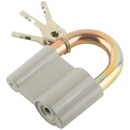 Дисковый механизм секрета. Корпус из алюминиевого сплава, стальная закаленная дужка. Три ключа в комп. Упаковка : блистер.