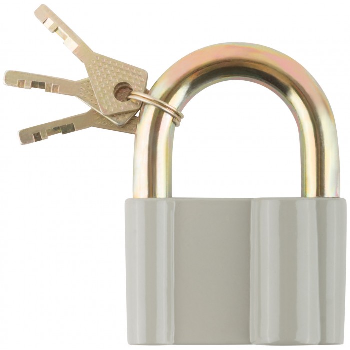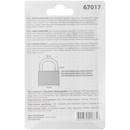 Дисковый механизм секрета. Корпус из алюминиевого сплава, стальная закаленная дужка. Три ключа в комп. Упаковка : блистер.