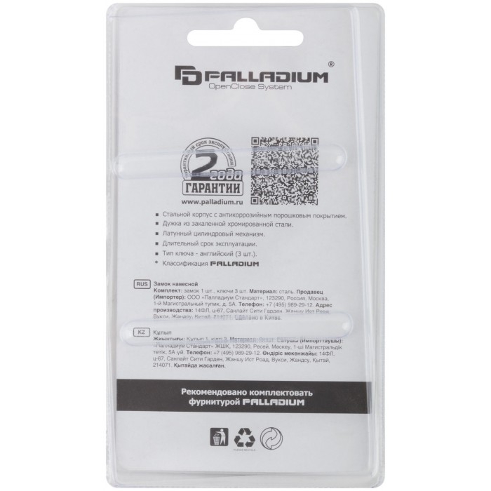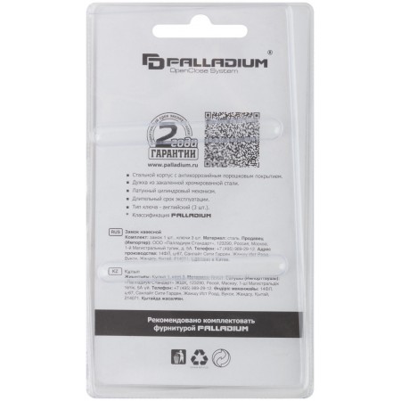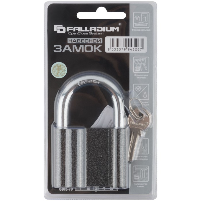 Замок навесной стальной корпус "PALLADIUM" ( 601S ) 70х54 мм, стальная дужка 11 мм (67089)