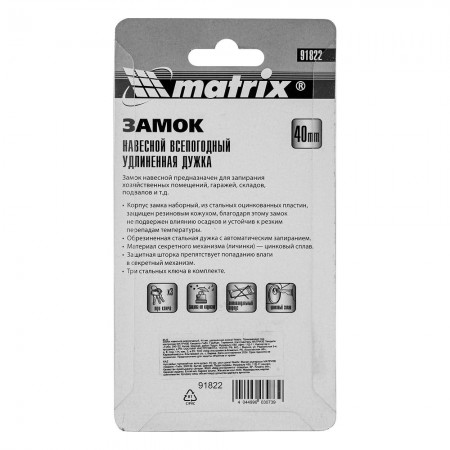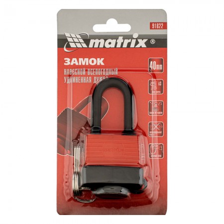 Замок навесной всепогодный, 40 мм, удлиненная дужка Matrix (91822)