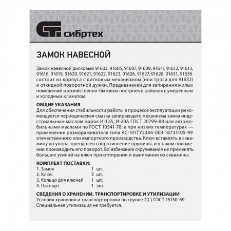 Замок навесной ЗН2-М1.80 мм Сибртех (91613)