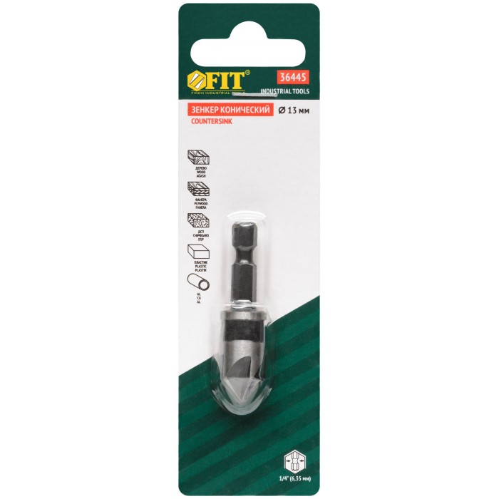 Хвостовик под биту. Для зенкования отверстий в алюминии, дереве и пластике. Рекомендуется использовать высокую скорость дрели, периодически извлекая дрель для очистки стружечной канавки зенкера. Материал: легированная сталь. Упаковка: блистер.