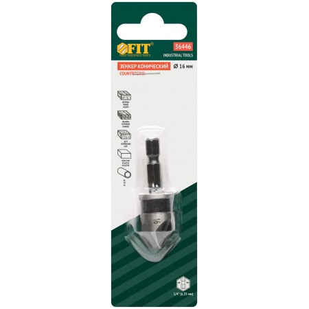 Зенкер конический, легированная сталь, хвостовик под биту, 16 мм (36446)