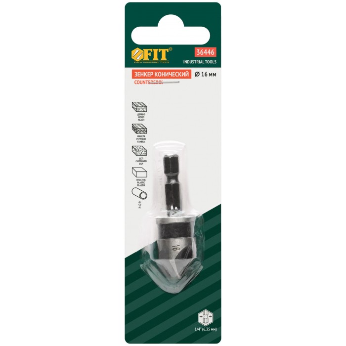 Хвостовик под биту. Для зенкования отверстий в алюминии, дереве и пластике. Рекомендуется использовать высокую скорость дрели, периодически извлекая дрель для очистки стружечной канавки зенкера. Материал: легированная сталь. Упаковка: блистер.