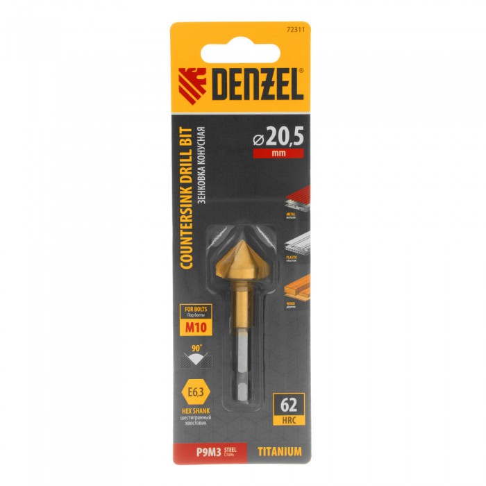 Зенковка конусная под М10, HSS, по металлу, 6-гранный хвостовик Denzel (72311)
