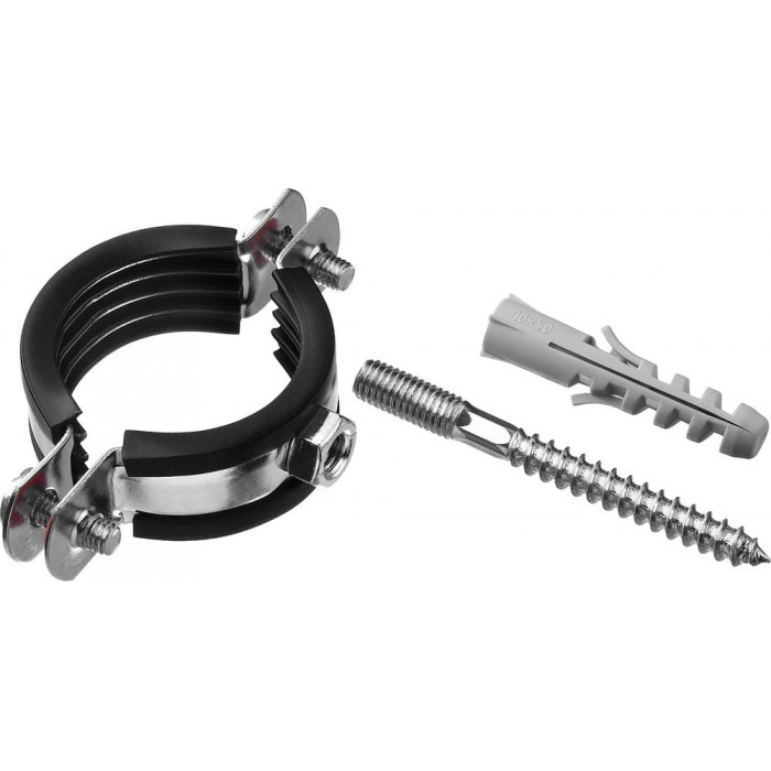 Стальные трубные хомуты способны выдерживать большие нагрузки и обеспечивают надежность крепления труб различного назначения к любым основаниям. Труба прочно фиксируется внутри хомута с помощью метрических винтов. Уплотнитель из высококачественной резины обеспечивает идеальную шумоизоляцию. Ширина ленты хомута составляет 20 мм.