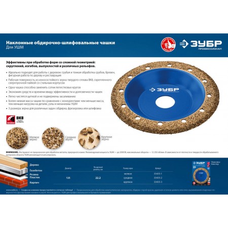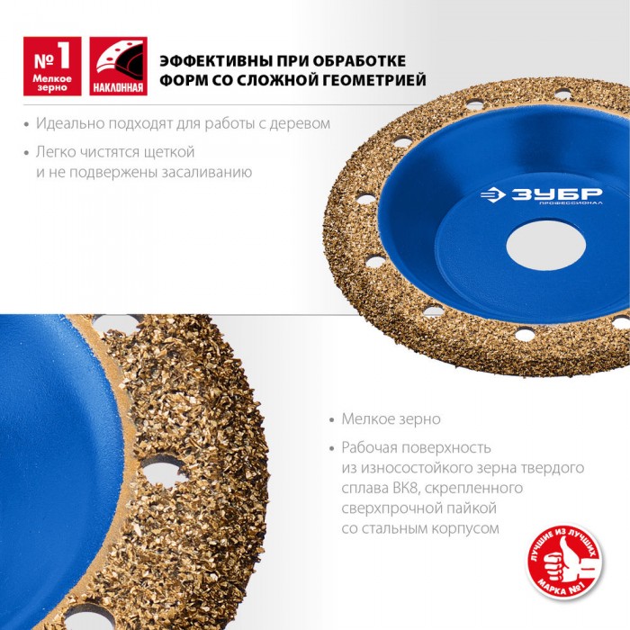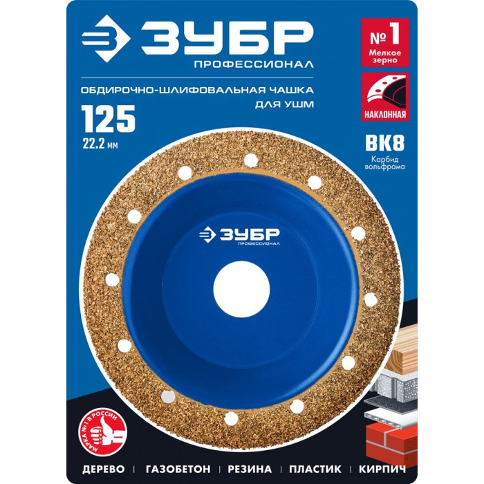 Обдирочно-шлифовальные чашки ЗУБР Профессионал изготовлены из износостойкого зерна твердосплава ВК8 скрепленного сверхпрочной пайкой с корпусом чашки благодаря чему обладают уникальным сверхвысоким ресурсом.