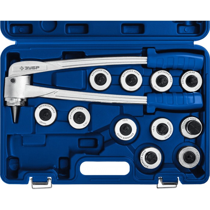 Профессиональный расширитель-калибратор рычажный ручной, в наборе со сменными головками. Для расширения, а затем быстрой и точной состыковки труб из отожженной меди и алюминия без использования фитингов. Сегменты головки изготовлены из высококачественной закаленной стали. Расширяющая головка состоит из шести лепестков обеспечивающих высокое качество выполнения работ.