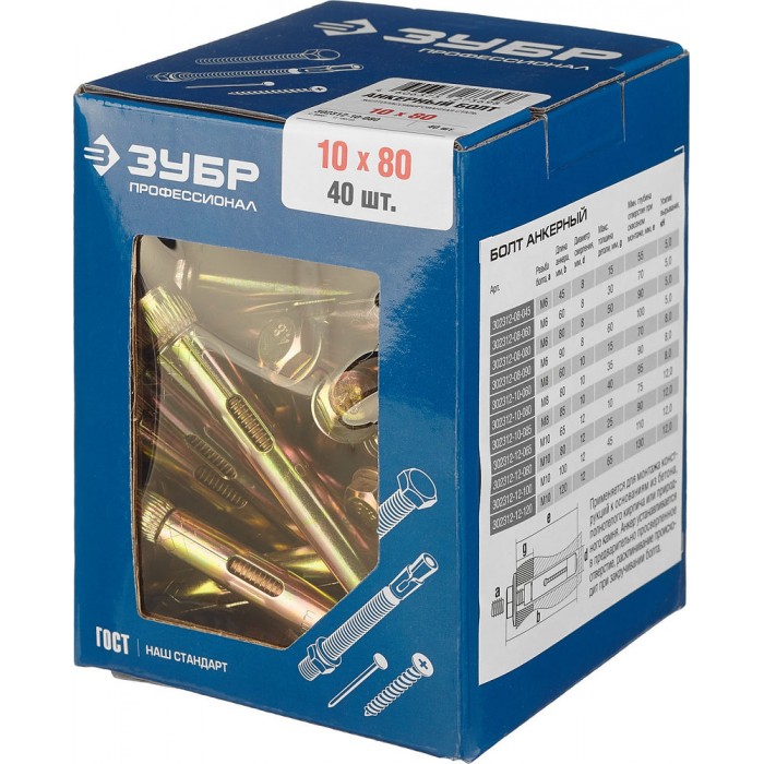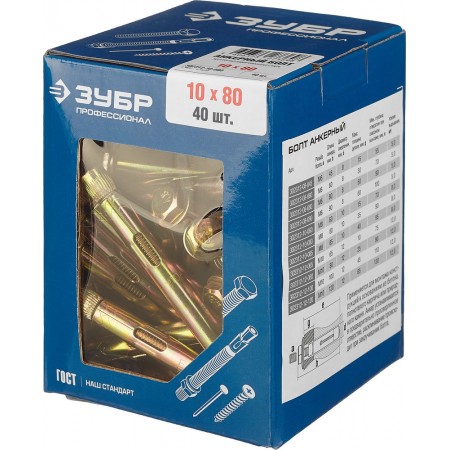 Анкерный болт 10?80 мм, 40 шт ЗУБР Профессионал 302312-10-080