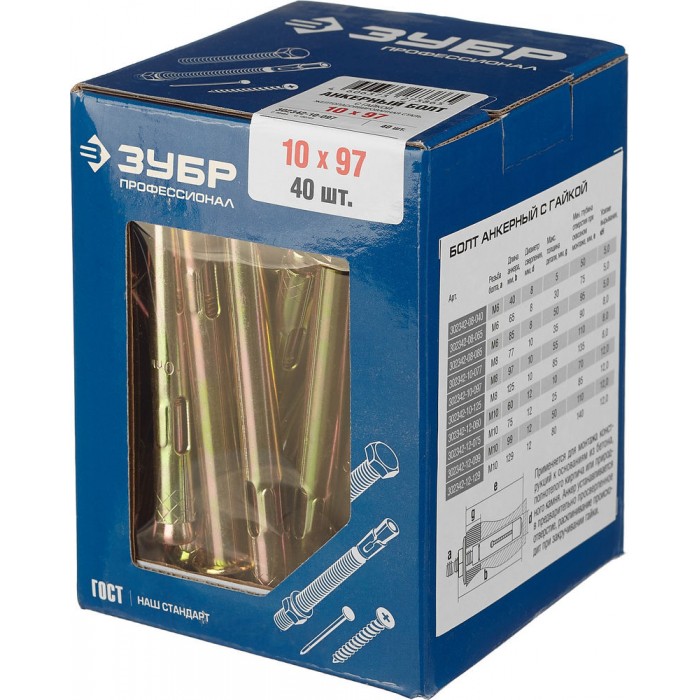 Анкерный болт с гайкой 10?97 мм, 40 шт ЗУБР Профессионал 302342-10-097