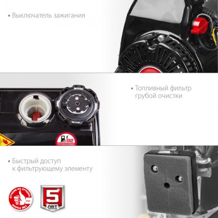 - Регулятор дросселя всегда под рукой на рукоятке, что облегчает эксплуатацию
