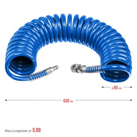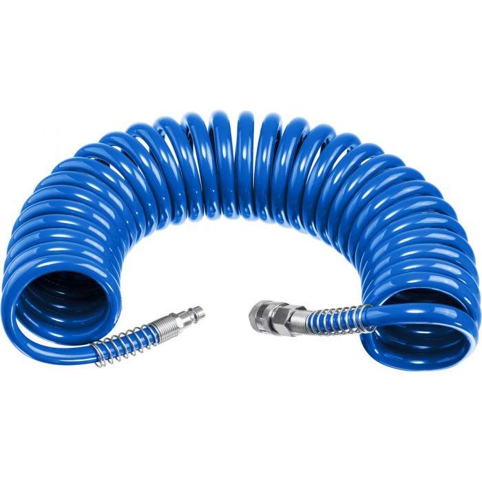 Шланг воздушный спиральный 10 м 8?12 мм 15 бар с фитингами рапид ЗУБР Профессионал 6472-10