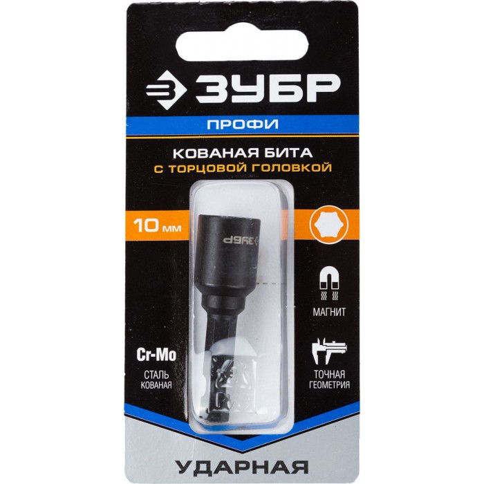 Бита ударная магнитная с торцевой головкой 10 мм, 50 мм ЗУБР Профессионал 26375-10