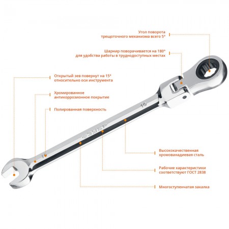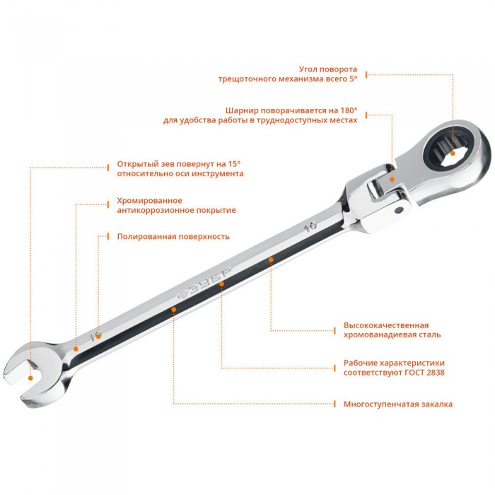 Ключ гаечный шарнирный трещоточный 10 мм Профессионал ЗУБР 27101-10