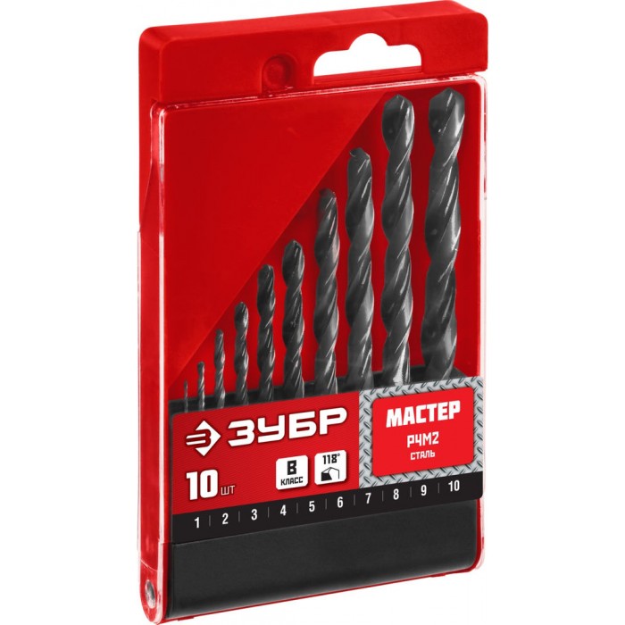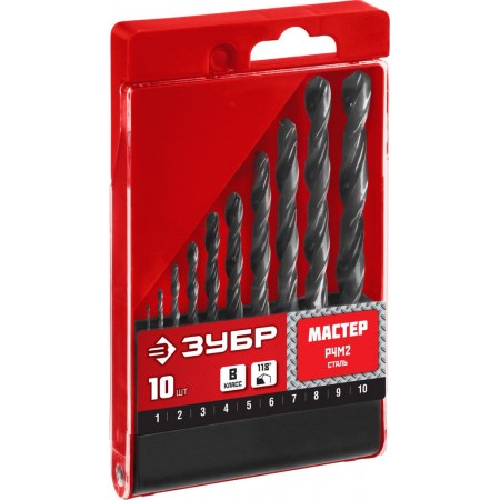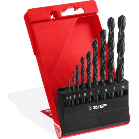 Набор сверл по металлу 10 шт, 1–10 мм, сталь Р4М2, класс В ЗУБР 29605-H10