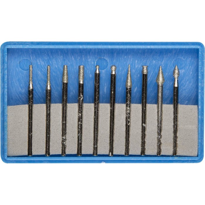 Набор алмазных мини-насадок для гравера 10 шт, хвостовик d 3 мм, P 150–180 ЗУБР Профессионал 33383-H10