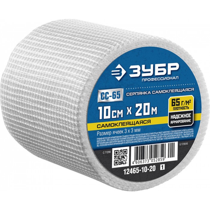 Сетка стеклотканевая самоклеящаяся 10 см?20 м 3?3 мм ЗУБР Профессионал 12465-10-20_z01