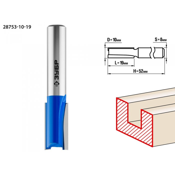 Фреза пазовая прямая 10?19 мм хвостовик 8 мм ЗУБР Профессионал 28753-10-19
